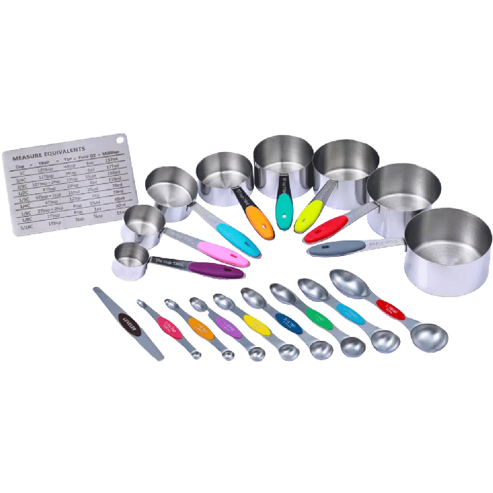 Haben Sie genug davon, amerikanische Rezepte mühsam umzurechnen? Mit diesem praktischen Set aus 18 Messlöffeln und Messbechern haben Sie immer die richtige Menge zur Hand – ideal für Kräuter, Kaffee oder Backzutaten!