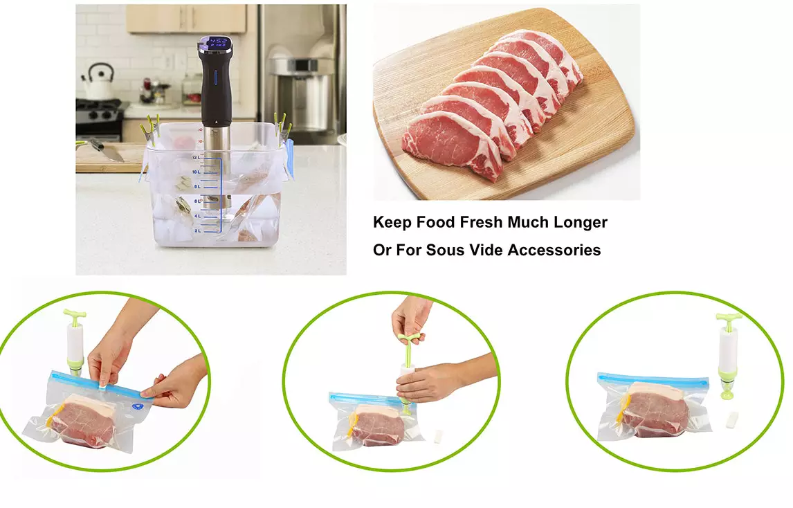 - Ziva Handvakuumpumpe: Ideal, um Lebensmittel länger frisch zu halten und perfekt für Sous-vide-Garen. Geeignet für Vakuumbeutel, Behälter, Universaldeckel und Weinverschlüsse.