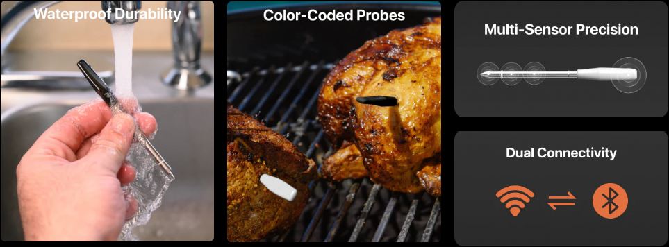 - 4 robuste, wasserdichte Sonden: Spülmaschinenfest, hitzebeständig bis 1.050 °F