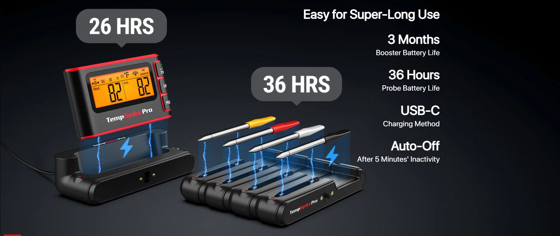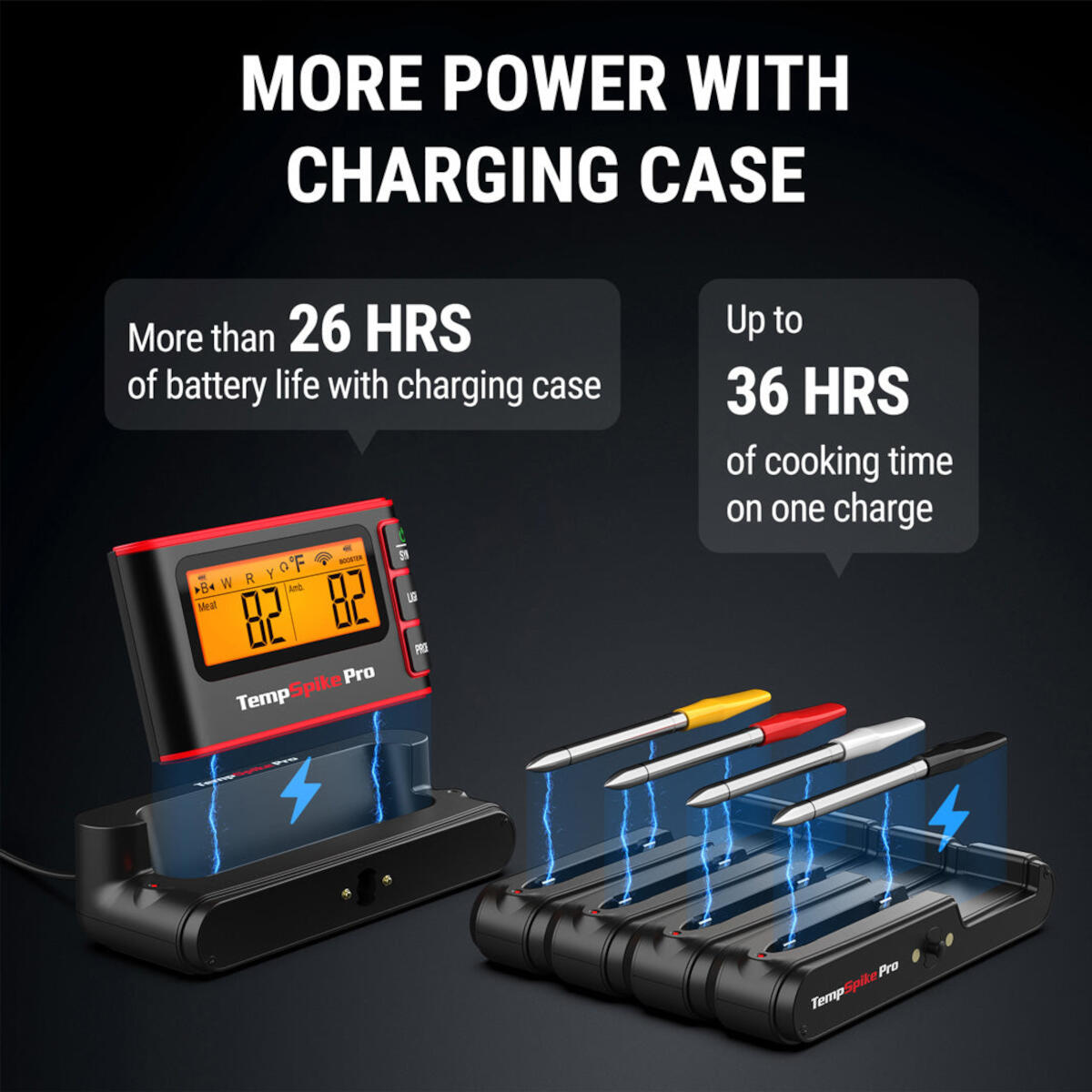 ThermoPro Smartes Fleischthermometer – TP980 TempSpike Pro 4-Sonden-WLAN/Bluetooth-Thermometer – Dualband-Konnektivität, farbcodierte Sonden, 36-Stunden-Batterie