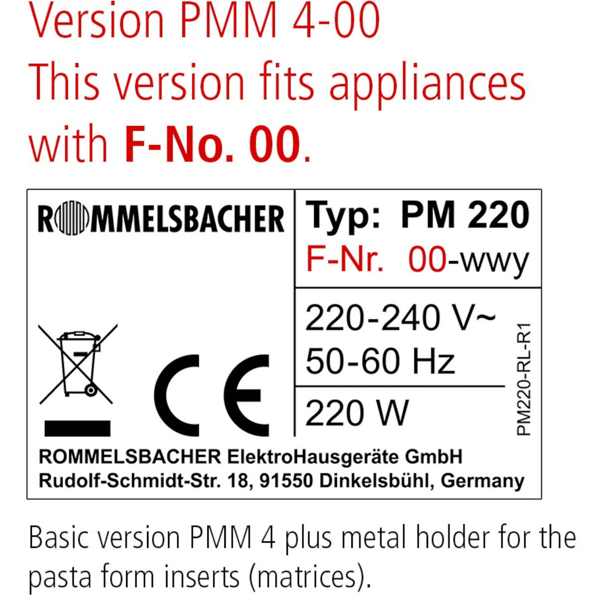- Zubehörset (optional): Enthält 4 zusätzliche Matrizen für noch mehr Nudelformen (Modellnummern PMM 4-00 oder PMM 4-01).