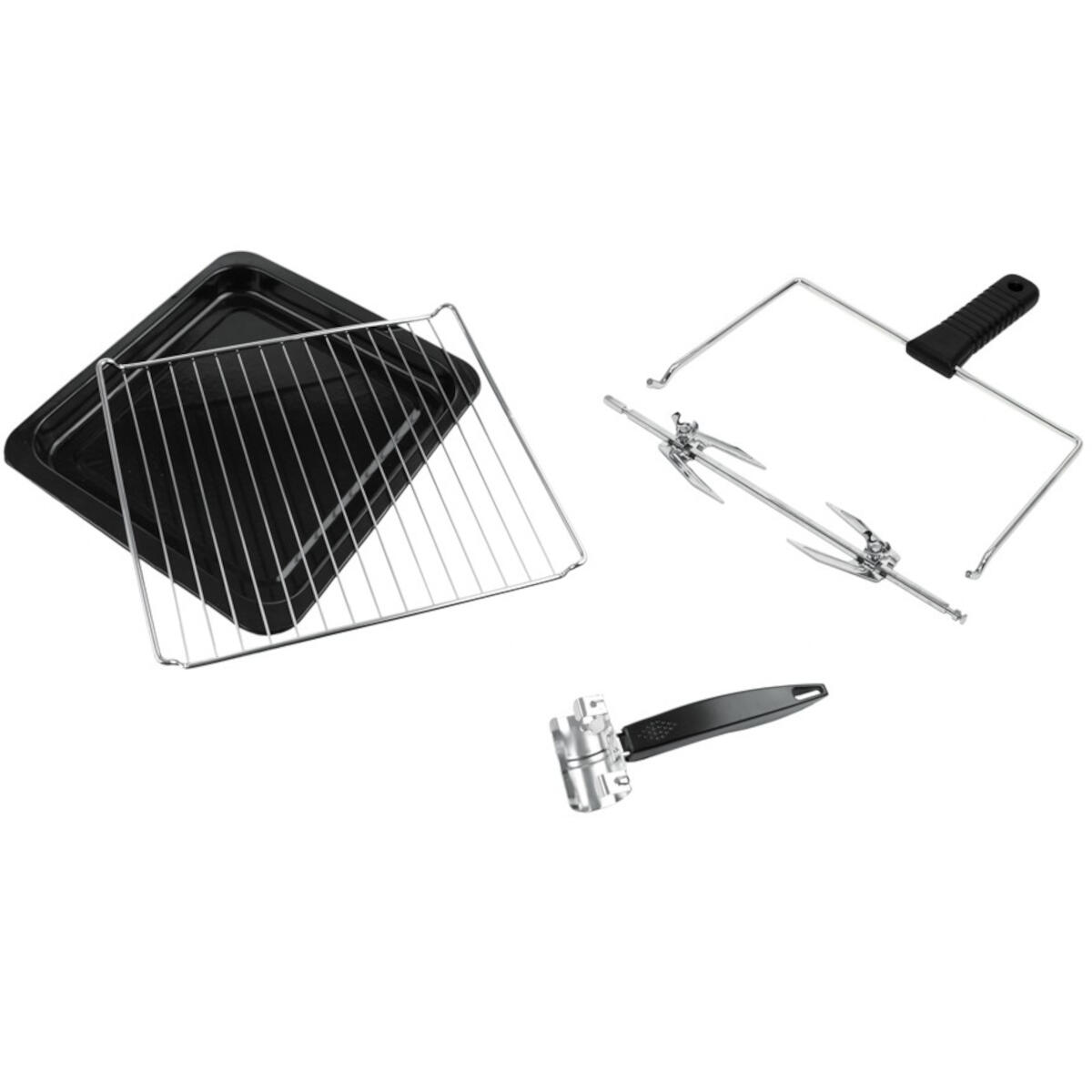 - Rotisserie-Set: Enthält einen motorisierten Drehspieß mit separatem Griff zum einfachen Entnehmen des gegarten Fleisches.