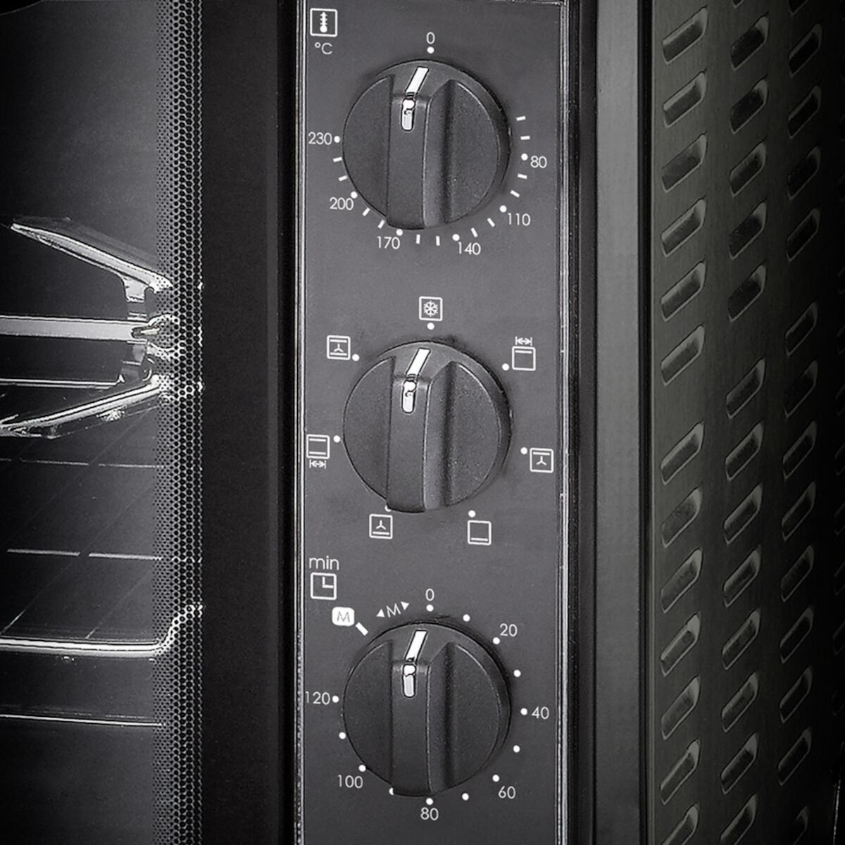 - Großzügiges Fassungsvermögen: Ein 30 Liter großer Backraum, perfekt für Backformen bis 29 cm Ø und groß genug für den täglichen Kochbedarf.