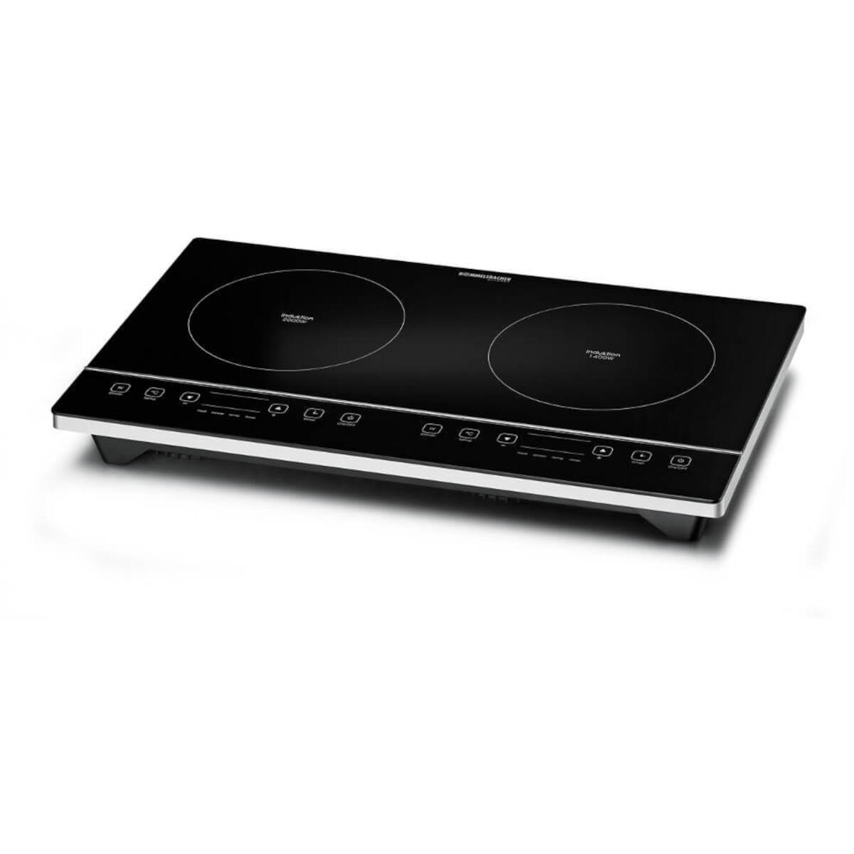 - 2 Kochzonen: eine mit 1400 W und eine mit 2000 W, geeignet für Töpfe bis 230 mm Ø.