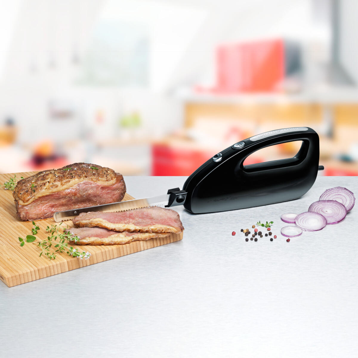 Schneiden Sie mühelos Brot, Fleisch, Geflügel, Kuchen und Tiefkühlkost mit dem ergonomischen, leistungsstarken Elektromesser EM 150 – für den alltäglichen Gebrauch und Ergebnisse auf Profi-Niveau.