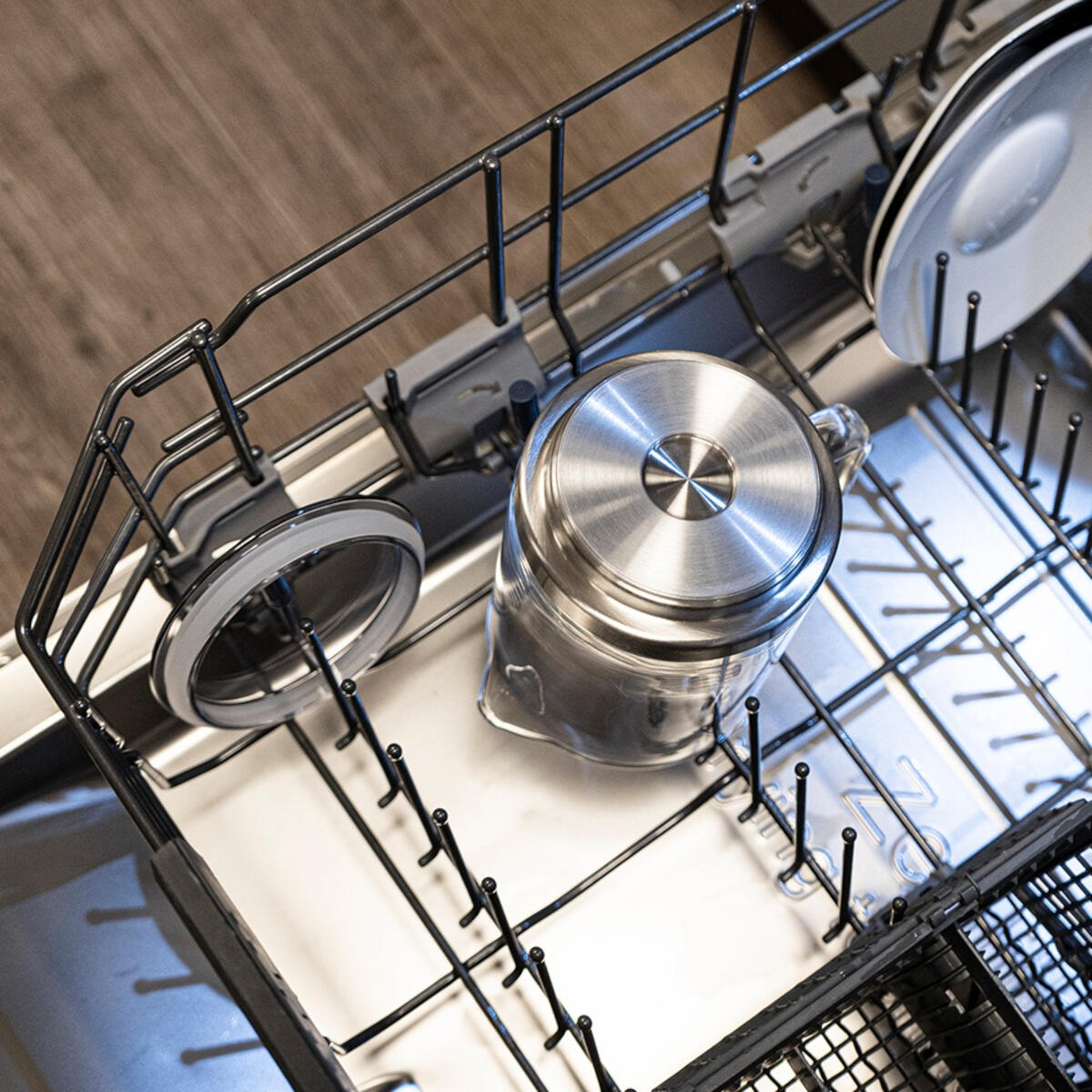 - Abnehmbarer Glaskrug mit Griff und transparentem Deckel