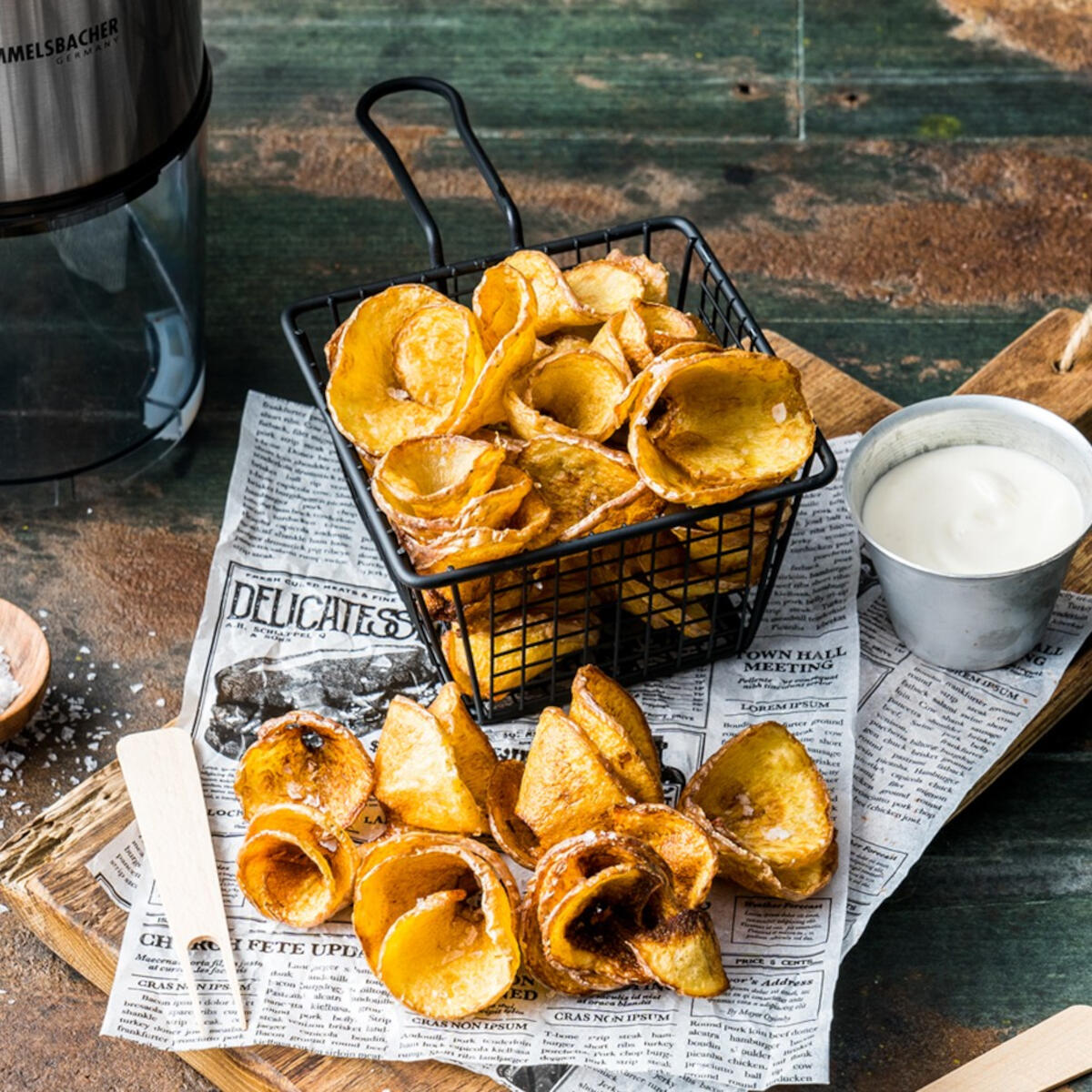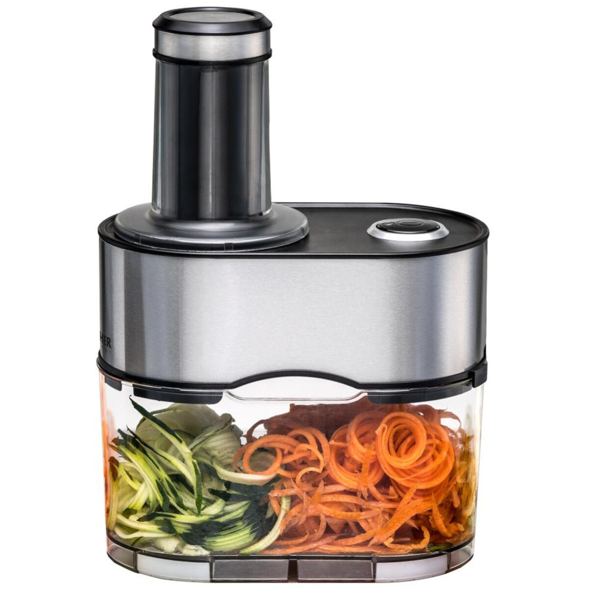 - ROMMELSCHBACHER Elektrischer Spiralschneider: Mit Edelstahlgehäuse und BPA-freiem Auffangbehälter.