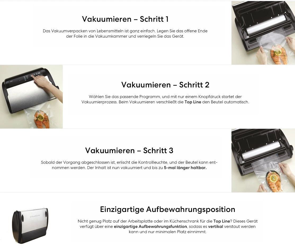- Perfekt für Sous Vide: Vakuumierte speisen können in einer sous vide pfanne bei bis zu 100 °C gegart werden.