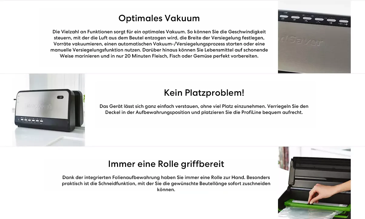 Aktualisieren Sie Ihre küche und erleben Sie die kunst der lebensmittelkonservierung mit der FoodSaver Profi Line Vakuumverpackungsmaschine. Bestellen Sie noch heute und genießen Sie langanhaltende frische!